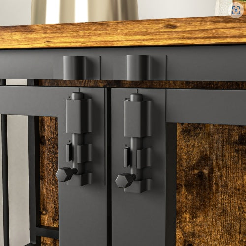 Modern Kennel Kennel Weighing Up to 80 Pounds, Cage Furniture with Multifunctional Removable Tray, Double Door Dog House, Lift Panel, 360 Degree Swivel - 3 Height-Adjustable Feeding Bowls (Brown)